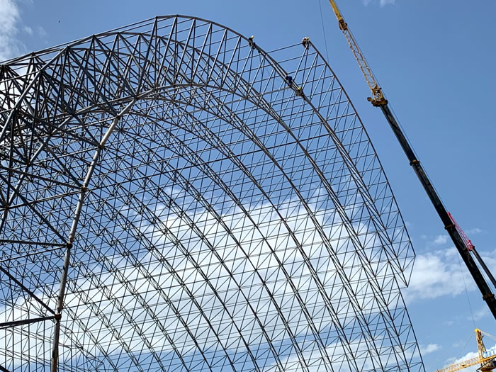 (2)网架加工前应对现场尺寸进行复测,确认无误后方可进行加工、安装;网架制作、运输、安装应遵守《空间网格结构技术规程》JGJ7-2010、《钢网架西藏螺栓球节点》JG/T 10-2009、《钢网架西藏螺栓球节点用高强度螺栓》 GB/T 16939-2016、《西藏钢结构西藏工程西藏施工规范》 GB50755-2012、《西藏钢结构西藏工程施工质量验收标准》 GB50205-2020。